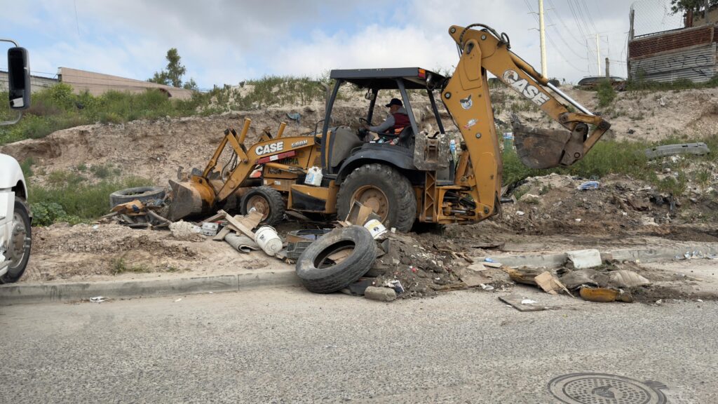 El recorrido inició en la Delegación La Presa Este se realizaron trabajos de motoconformado en la calle Valle Santa Mónica, en la colonia El Niño, donde se mejoraron 5 mil metros cuadrados de vialidad y se retiraron 30 toneladas de basura pesada.