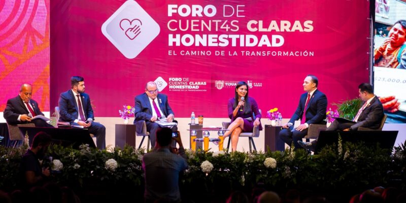 TIJUANA, BC, 06 DE OCTUBRE DE 2023.- Un gobierno bien calificado, con capacidad de pago para cumplir sus compromisos como la reducción de la deuda pública en un 10.38 por ciento o la recaudación por impuesto predial que superó los mil millones de pesos, fue parte de lo presentado por la alcaldesa Montserrat Caballero Ramírez en su Foro de Cuentas Claras, en el Eje de Transparencia.