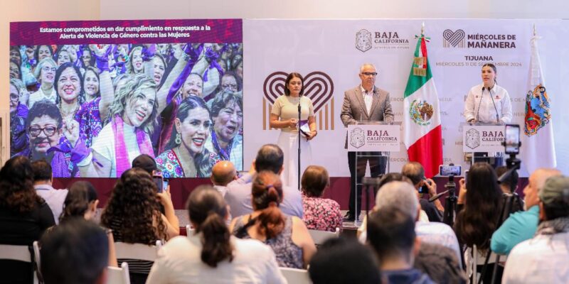 Marina del Pilar enfatizó durante el Miércoles de Mañanera que, desde el primer día de su gestión como gobernadora, se iniciaron trabajos para atender la alerta, en los que destaca la construcción de un Centro de Justicia para las Mujeres (CEJUM) en Tijuana, que brinda orientación y apoyo integral a las víctimas. Además, se construyó otro en San Quintín, y se colocó la primera piedra del Centro en Mexicali.