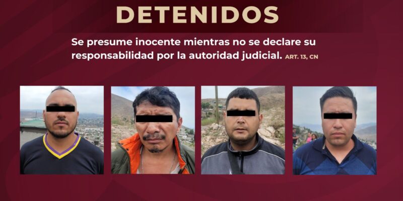 De inmediato los oficiales se trasladaron al lugar, logrando capturar a los presuntos responsables que se identificaron, como: José “N”, alias “El Licenciado”, de 32 años, Gustavo “N”, de 28 años, Ulises “N”, alias “El Gordo”, de 27 y Víctor “N”, de 48.