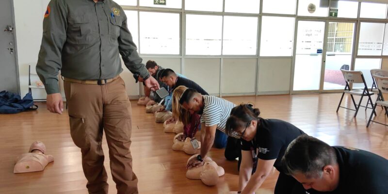 TIJUANA, BC, 19 DE JULIO DE 2024.- Con la finalidad de conocer las medidas iniciales que se deben llevar a cabo en caso de emergencias, personal del Instituto Municipal del Deporte (IMDET) participó en una capacitación de primeros auxilios impartida por la Dirección de Protección Civil del XXIV Ayuntamiento de Tijuana, que preside la Alcaldesa Montserrat Caballero Ramírez.