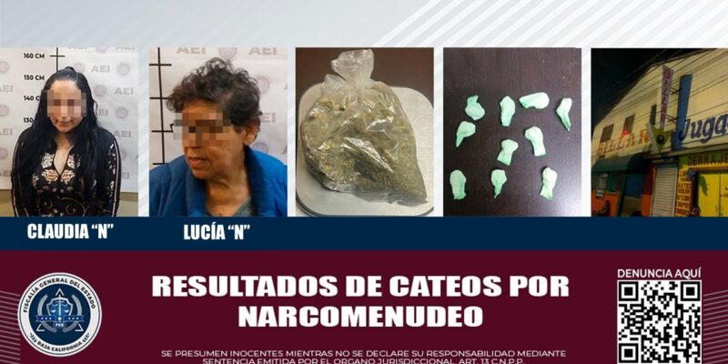 Al incursionar en el primer domicilio, en la calle Vizcaíno de la colonia Infonavit Lomas del Porvenir en Tijuana, se detuvo a Lucía “N”. En el lugar se encontró una bolsa de plástico transparente conteniendo en su interior una hierba verde y seca con las características de la droga conocida como marihuana, con un peso aproximado de 31.8 gramos.