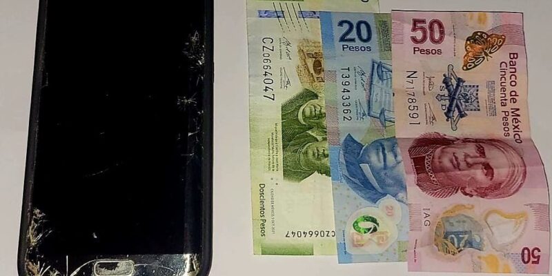 El presunto responsable fue abordado por los agentes y al realizarle una inspección corporal, le fue localizado el celular y dinero de la víctima, así como un arma tipo navaja.