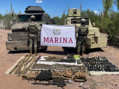 Marina aseguró vehículos blindados y armas en el municipio de Caborca, Sonora