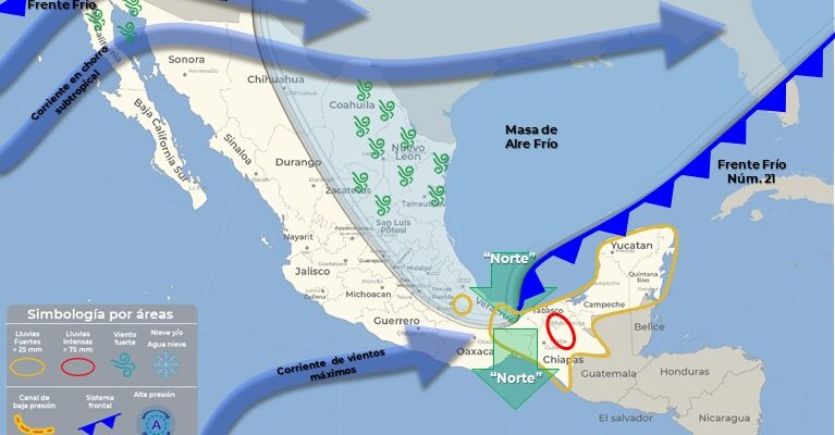 Cervantes Hernández explicó que estas condiciones son propias de la temporada invernal, la cual se hace acompañar de frío, lluvia, viento y en ocasiones heladas, caída de aguanieve y nieve, principalmente en zonas altas.