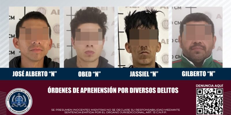 ROSARITO, BC, 04 DE JULIO DE 2024.- Elementos de la Agencia Estatal de Investigación (AEI) de la Fiscalía General del Estado ejecutaron cuatro mandatos judiciales por los delitos de robo, robo de vehículo, lesiones y abuso sexual.
