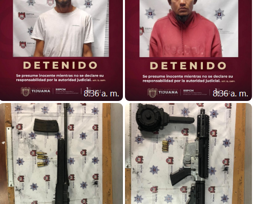 TIJUANA, BC, 09 DE NOVIEMBRE DE 2023.- La noche de ayer, policías municipales y personal militar interceptaron un vehículo donde dos presuntos integrantes de la delincuencia organizada, trasladaban un armamento entre fusiles de alto calibre y pistolas.