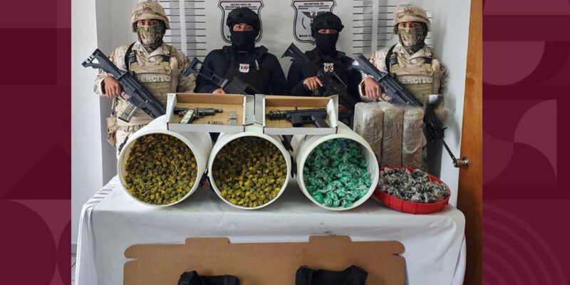 Los narcóticos, las armas de fuego, los cartuchos útiles y los chalecos fueron puestos a disposición de la Fiscalía General de la República (FGR) con sede en la ciudad de Ensenada.