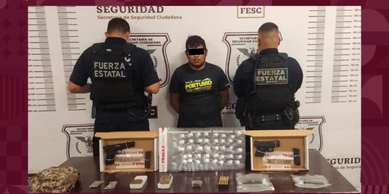 TIJUANA, BC, 25 DE ABRIL 2023.- Diversos cartuchos útiles, armas de fuego, cocaína y un vehículo con reporte de robo, fue lo asegurado a un hombre detenido por agentes de la Fuerza Estatal de Seguridad Ciudadana (FESC) pertenecientes a la Secretaría de Seguridad Ciudadana de Baja California (SSCBC), luego de un operativo preventivo desplegado en la colonia Villa del Campo Segunda Sección, en Tijuana.