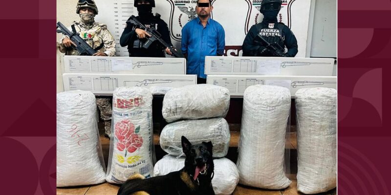Por esta razón, Moisés “N”, fue detenido a la brevedad y, junto a la droga y armas aseguradas, se le puso a disposición de la Fiscalía General de la República (FGR), a fin de que se le dicte su situación jurídica conforme a las investigaciones correspondientes; en este operativo participó un agente canino de la FESC, entrenado en la detección de narcóticos.