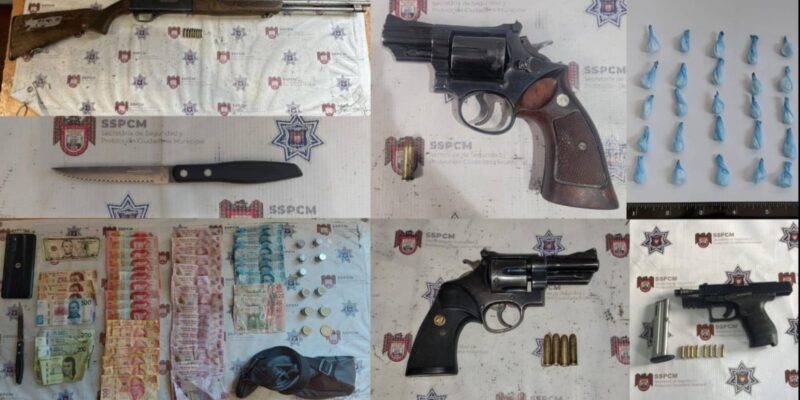 Durante un patrullaje, en Villafontana policías municipales observaron a un hombre en la vía pública armado, por lo que rápidamente fue asegurado Ramón “N”, de 43 años, al que le fue confiscado un rifle con ocho cartuchos útiles, mientras que en la colonia Mariano Matamoros se capturó a Miguel “N”, de 29 años, con un revólver calibre .357 abastecida con un cartucho útil, quien cuenta con antecedentes penales.