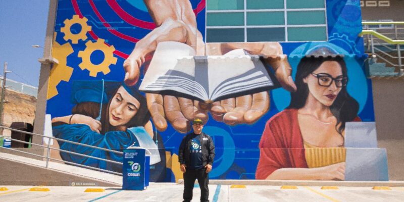 Al respecto, el tijuanense “Mode” Orozco, quien tuvo sus inicios en el graffiti, expuso que el objetivo de su pintura fue plasmar el tema de las oportunidades para los jóvenes en la educación, donde utilizó como base el acrílico, y posteriormente, pintura en aerosol tipo grafiti.