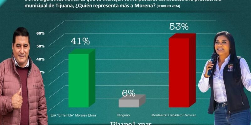 El estudio practicado por la encuestadora arrojó un 53 por ciento para Caballero Ramírez contra un 41 por ciento para Erik Morales, al aplicar la siguiente pregunta: De los siguientes nombres que se manejan como posibles candidatos a la alcaldía de Tijuana, ¿Quién representa más Morena?