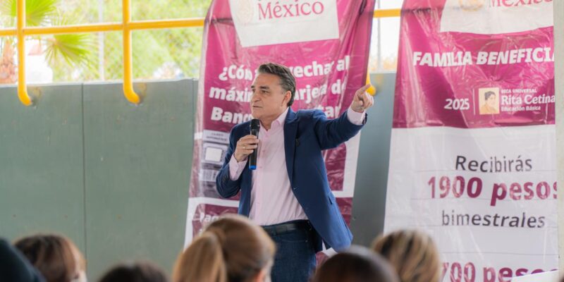 El delegado recordó que las familias beneficiarias reciben 1,900 pesos bimestrales por cada estudiante de secundaria, más 700 pesos adicionales si tienen más de un hijo en este nivel educativo, permitiendo que cada hogar tenga un respaldo económico para la educación de sus hijas e hijos.