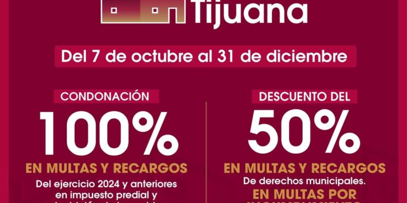 TIJUANA, BC, 01 DE NOVIEMBRE DE 2024.- El Ayuntamiento que encabeza, Ismael Burgueño Ruiz, exhorta a las y los tijuanenses a aprovechar la condonación de multas y recargos municipales, correspondientes al ejercicio fiscal 2024 y anteriores.