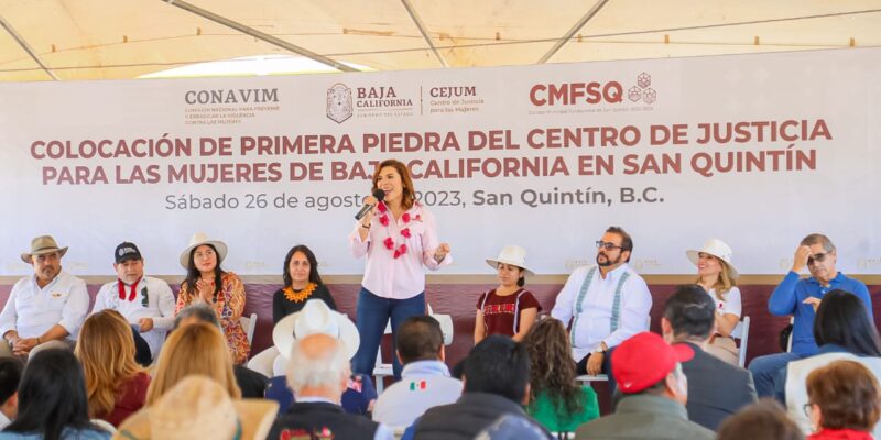 La titular del Poder Ejecutivo del Estado, encabezó la colocación de la primera piedra del Centro de Justicia para las Mujeres de San Quintín, que será el segundo en toda la entidad y que, en coordinación con el Poder Judicial del Estado que encabeza el magistrado Alejandro Isaac Fragozo López, ofrecerá un esquema de justicia y atención integral a las sanquintinenses que sean víctimas de cualquier forma de violencia.