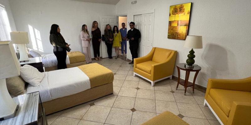 Detalló, que la casa cuenta con sala de estar con reclinables, comedor, una silla lift para quienes no pueden subir escaleras; cinco habitaciones, un área de juegos y un patio para actividades al aire libre.