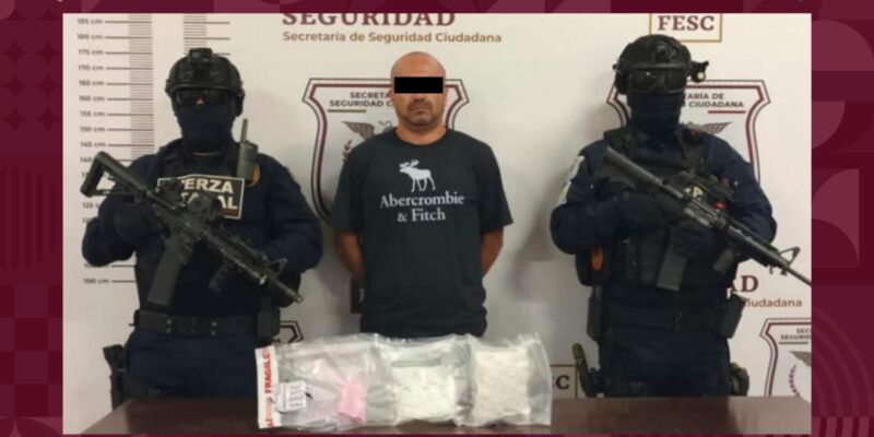 Por este motivo, los uniformados dieron inicio al protocolo de vehículo en fuga, el cual finalizó metros más adelante, cuando fue interceptado sobre la esquina que forman la avenida Palma Real y avenida García, de la colonia Palma Real. Del automóvil descendió quien se identificó como Rigoberto “N”, de 37 años y originario del Estado de Sinaloa.