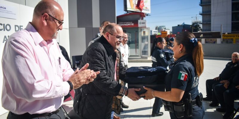 TIJUANA, BC, 25 DE ENERO DE 2023.- Tras varias administraciones municipales, este día se dio un paso significativo en la dignificación a la labor de los policías comerciales y guardias auxiliares de Tijuana, esto al proporcionarles un incremento del 25 por ciento íntegro a su salario.