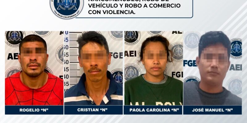 TIJUANA, BC, 26 DE ABRIL DE 2023.- La Fiscalía General del Estado, a través de la Agencia Estatal de Investigación, logró la cumplimentación de cuatro órdenes de aprehensión en contra de igual número de personas (tres hombres y una mujer), que eran requeridos por jueces de control, por tener señalamientos en su contra por diversos delitos.