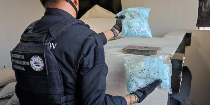 Bajo la conducción del Ministerio Público de la Federación (MPF), en su Delegación de Baja California, los elementos de la Policía Federal Ministerial (PFM), de la AIC, ejecutaron la diligencia en un fraccionamiento de la referida ciudad, asegurando además alrededor de un kilo de polvo blanco con características propias del fentanilo y 60 gramos de presunta metanfetamina.