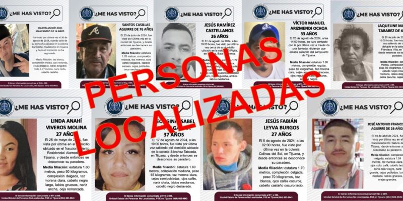 TIJUANA, BC, 12 DE SEPTIEMBRE DE 2024.- La Fiscalía General del Estado (FGE) informa de la localización de nueve personas que habían sido reportadas como desaparecidas; tres mujeres y seis hombres, todos fueron hallados en condiciones de salud óptimas.