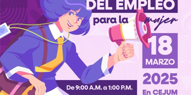 TIJUANA, BC, 14 DE MARZO DE 2025.- Para fortalecer la autonomía económica de las mujeres y generar nuevas oportunidades de empleo, el Centro de Justicia para las Mujeres (CEJUM), en coordinación con el Gobierno de México a través de la Secretaría de Trabajo y Previsión Social, llevarán a cabo la Feria del Empleo para la Mujer el próximo 18 de marzo de 2025, en las instalaciones de CEJUM Tijuana, ubicadas en la Avenida Moctezuma #1 en la Colonia Residencial de Cortez, en un horario de 9:00 AM a 1:00 PM.