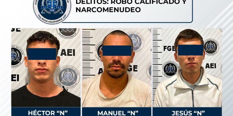 TIJUANA, BC, 03 DE ENERO DE 2023.- Como resultado de acciones de investigación, agentes de la Fiscalía General del Estado, lograron cumplimentar tres órdenes de aprehensión por los delitos de robo calificado y narcomenudeo.