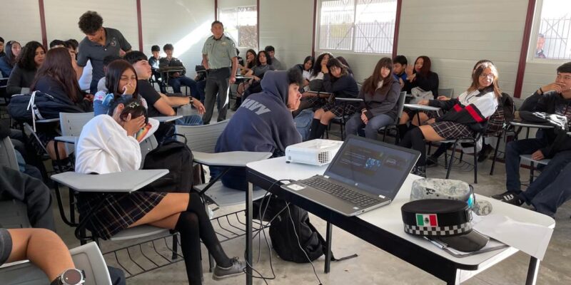 Durante la jornada de prevención realizada en el Centro de Estudios Tecnológicos del Mar 40 (CETMAR) en Playas de Rosarito, personal de la Guardia Nacional explicó a los estudiantes diversas formas de prevenir incidentes que puedan poner en riesgo tanto su integridad física como su seguridad jurídica. Los agentes compartieron experiencias y detallaron cómo denunciar la posible comisión de un delito, además les informaron sobre el uso de las líneas de emergencia 911 y 088 para una respuesta inmediata.