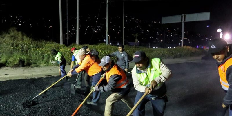 Los trabajos se realizan como parte de las actividades de rehabilitación de vialidades de manera nocturna, a través del programa ‘Bye Bye Baches’ en la delegación de La Presa Este, sobre avenida Vía Rápida Oriente, de la colonia Lomas Virreyes.