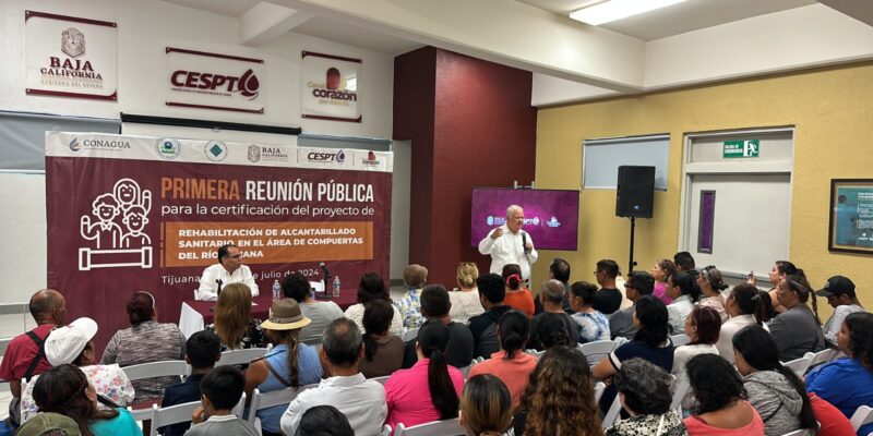 TIJUANA, BC, 29 DE JULIO DE 2024.- La Comisión Estatal de Servicios Públicos de Tijuana (CESPT) realizó la primera reunión pública para la presentar ante la comunidad, la propuesta del Proyecto de Compuertas del Río Tijuana, con la finalidad de garantizar una supervisión transparente y de participación ciudadana en este proyecto que contribuirá en la mejora del manejo del agua residual en la región fronteriza Tijuana-San Diego.