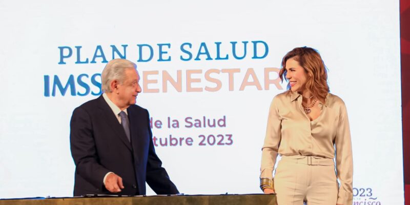 CIUDAD DE MÉXICO, 10 DE OCTUBRE DE 2023.- Para asegurar el derecho de las y los bajacalifornianos a la atención médica de calidad, la gobernadora Marina del Pilar Ávila Olmeda firmó junto al presidente de México, Andrés Manuel López Obrador, el Acuerdo Nacional para la Federalización de los Servicios de Salud, mismo que instituye el IMSS Bienestar en el Estado y permitirá llegar a todas las personas que no cuentan con seguridad social.