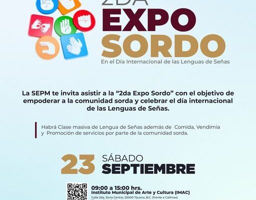 TIJUANA, BC, 18 DE SEPTIEMBRE DE 2023.- El Ayuntamiento, que encabeza la alcaldesa Montserrat Caballero Ramírez, a través de la Secretaría de Educación Pública Municipal (SEPM), realizará la Expo Sordos 2023, en el marco del Día Internacional de las Lenguas de Señas.