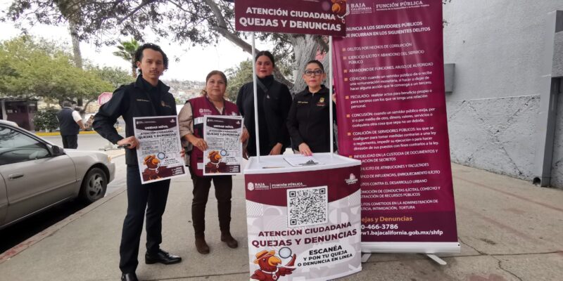 La titular de la SHFP, Rosina del Villar Casas, a través de la Dirección de Contraloría Social, inició las actividades de este proyecto, el cual consiste en instalar de manera aleatoria módulos de atención en las dependencias con mayor afluencia ciudadana de los municipios de Mexicali, Tijuana, Tecate, Ensenada, Rosarito y San Quintín, donde se brindará la atención necesaria para quienes deseen interponer una queja o denuncia de manera inmediata en contra alguna persona servidora pública que haya proporcionado un trato inadecuado al ejercer un servicio o trámite.