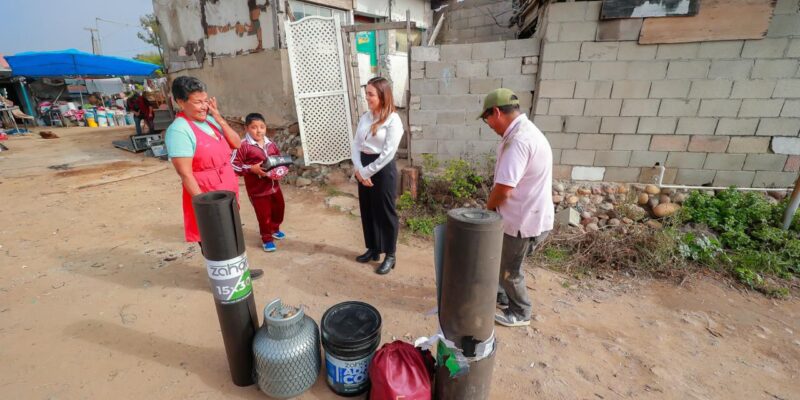 Además del apoyo económico, le entregó material para reforzar su vivienda previo a la temporada de lluvias como brea, felpa para techo y arenado, una mina de gas, despensas y un balón para el menor de la familia.
