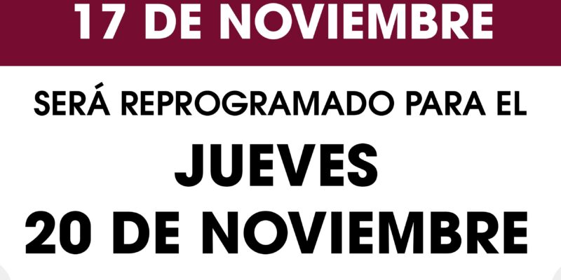 De acuerdo con la Dirección de Comunicación Social y Relaciones Públicas, el tradicional desfile fue reprogramado para el jueves 20 de noviembre, con el objetivo de privilegiar la seguridad de los grupos participantes, así como de las y los asistentes.