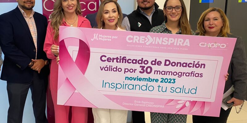 MEXICALI, BC, 07 DE NOVIEMBRE DE 2023.- Al continuar con las acciones para concientizar y sensibilizar sobre el Cáncer de Mama, “Credinspira” anunció este martes en Mexicali la campaña “Inspirando tu Salud”, con la cual se busca que más empresas se sumen a esta importante alianza en beneficio de la mujer.