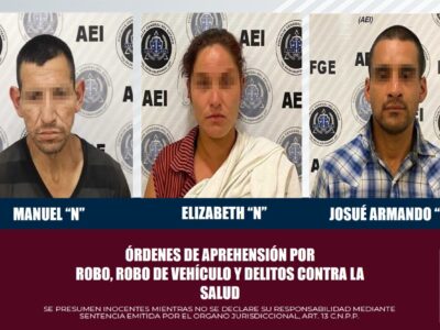 Dos hombres y una mujer son detenidos con orden de aprehensión