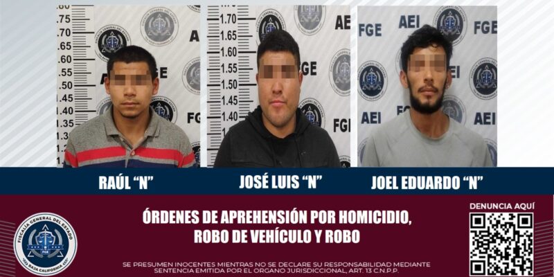 En expedientes penales por separado, los presuntos responsables son señalados de los delitos de homicidio, robo de vehículo y robo, por lo que una vez girados los mandamientos judiciales por la autoridad competente, agentes investigadores llevaron a cabo las diligencias correspondientes.