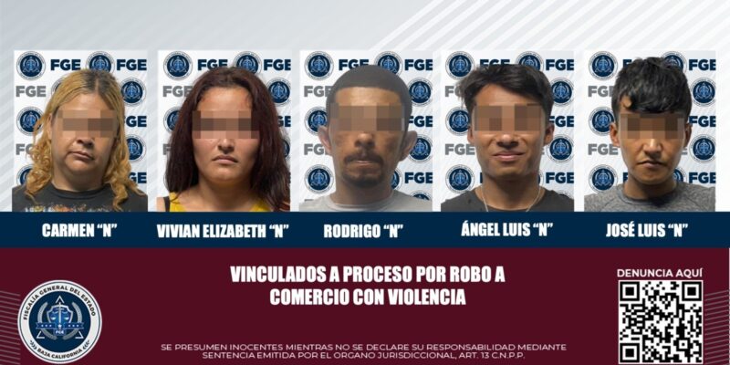 TIJUANA, BC, 14 DE OCTUBRE DE 2024.- La Fiscalía General del Estado logró la vinculación a proceso penal de cinco imputados por el delito de robo calificado a comercio con violencia.